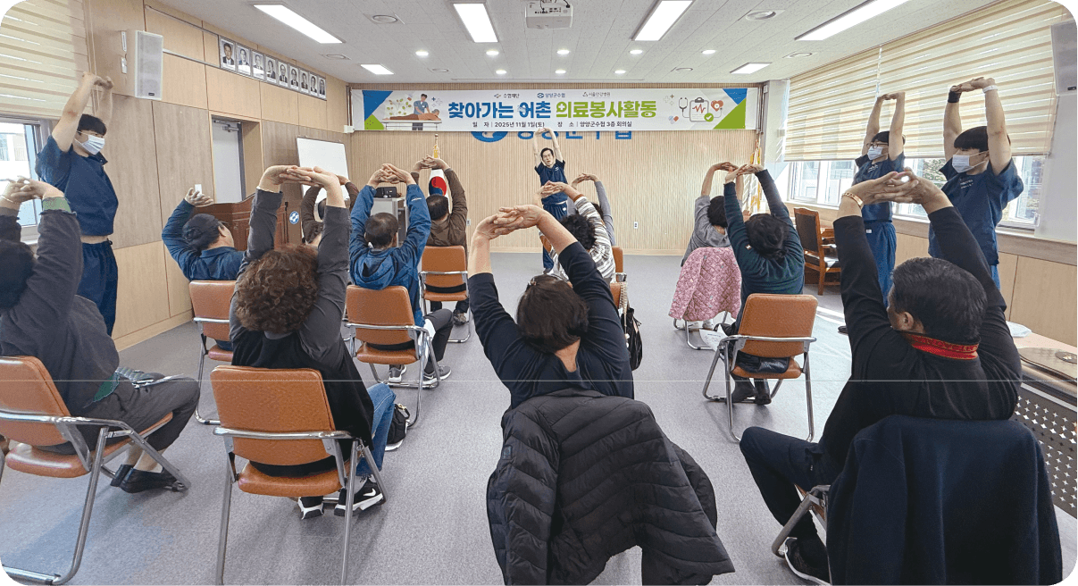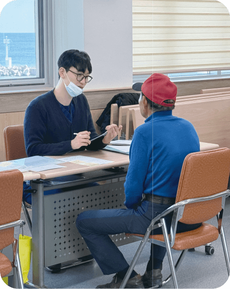 이번 의료봉사는 근골격계 통증과 재활치료에 중점을 두고 진행되었습니다. 바다 위와 육지에서 오랜 시간 고된 육체노동을 해오신 어업인들에게 근골격계 질환과 만성 통증은 익숙한 불편함이지만, 치료는 늘 뒤로 미뤄질 수밖에 없었습니다. 이와 같은 상황 속에 계셨던 분들 약 50여명이 진료를 받으며, 자신의 몸 상태를 차분히 돌아보는 시간을 가졌습니다.
